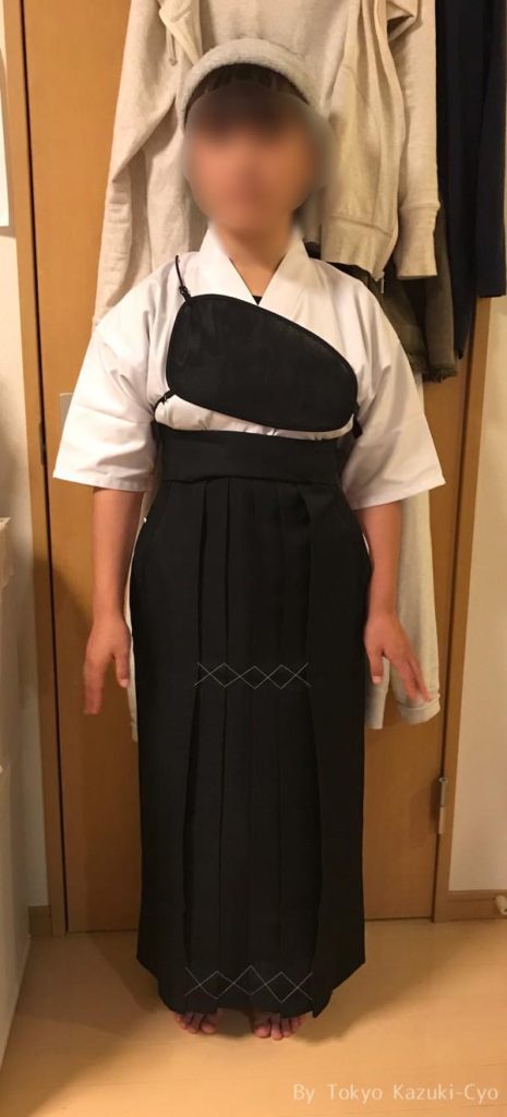 胸当ては、白と黒があって、弓道というと黒のイメージなので、黒を買ったのですが、なんか白のほうが目立たないのでよいと言われているそうです。